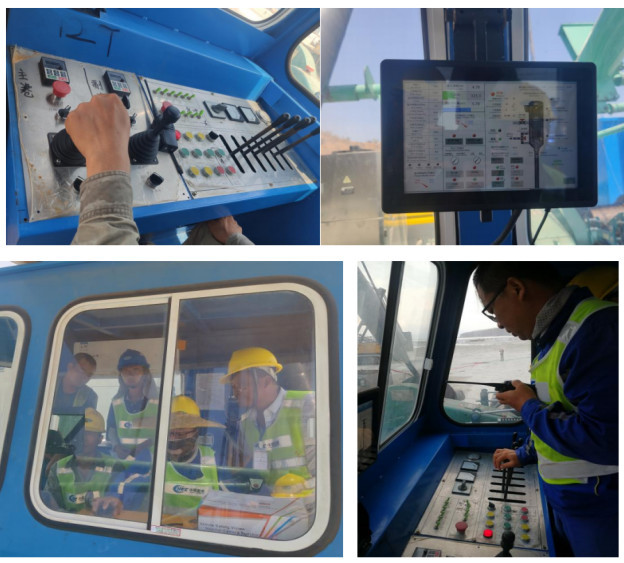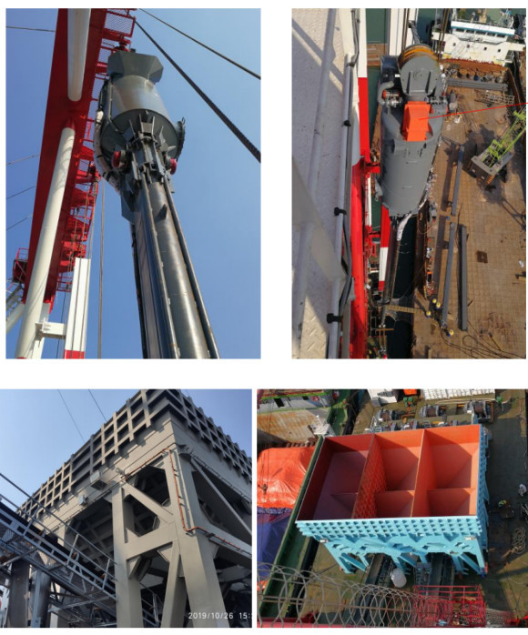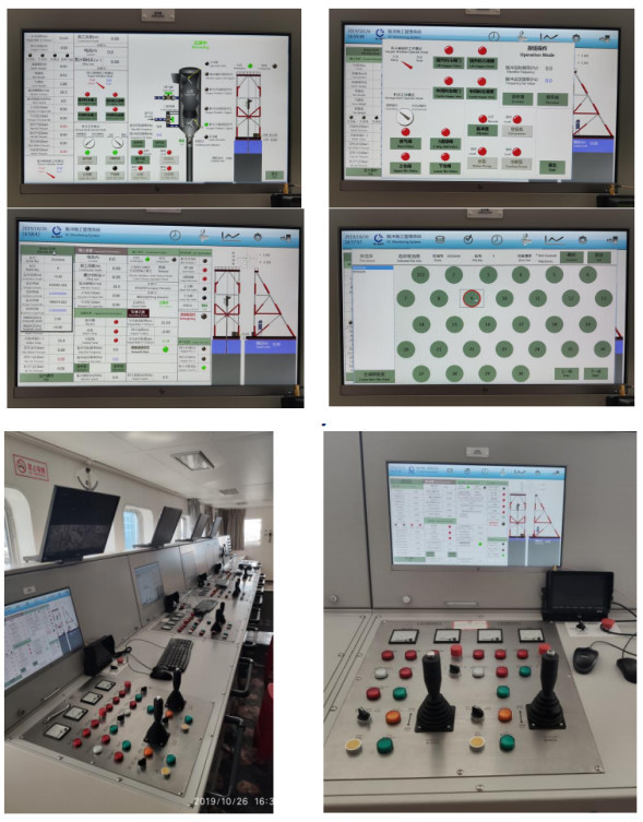 此项工程可谓是底部出料振冲器的典型应用案例,陆上完成最高SPT值50击的38300根制桩与海上完成最高SPT值70击的18500根制桩工程的同时进行让我们应接不暇。值得一提的是这次海上施工部分采用驳船两艘,分别带动4套和3套最大造孔深度达35m的底出料振冲设备同时工作,振冲器系统,料仓系统及石料传输系统已全面实现自动化工作。