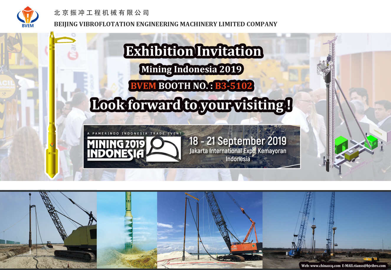 2019年9月18-21日,BVEM 将在印尼雅加达工程机械展为客户提供全方位的振冲产品展示及振冲施工的讲解。在这里您将会了解到振冲器的工作原理,振冲设备的选型,振冲法的施工设计及振冲器的组装调试等全面的振冲领域相关知识。