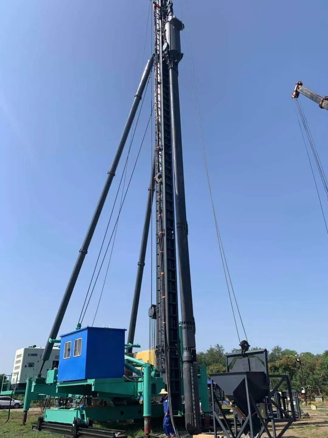 试验中,我们对定制化底部出料振冲成套设备进行了全过程的安装、调试,在验证设备的使用性能的同时,进一步优化和完善设备的性能,满足客户的要求。 此次底部出料设备成套桩架是我司与国内专业先进的桩工机械制造商-振中机械配合研发生产。共同专注于桩工领域的兄弟联盟,使得高达33米,重达85000kg的设备鹤立鸡群,完美呈现。